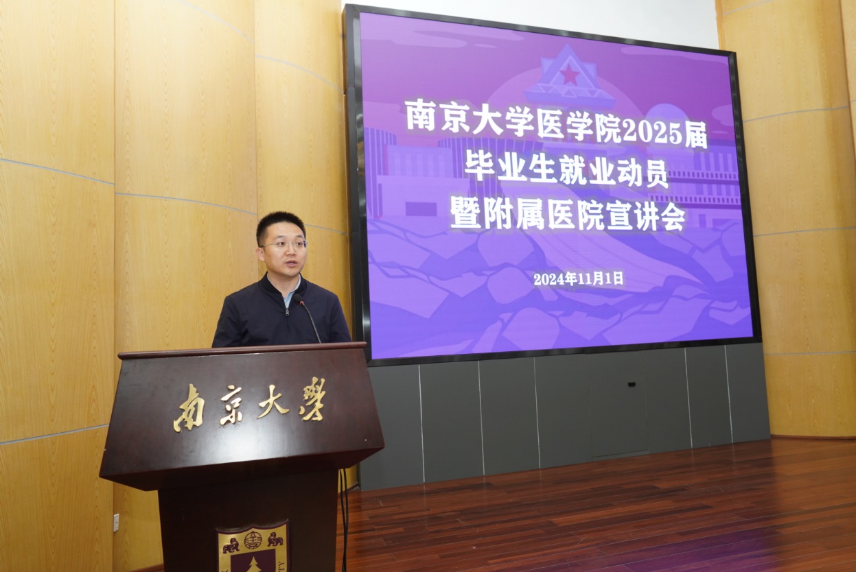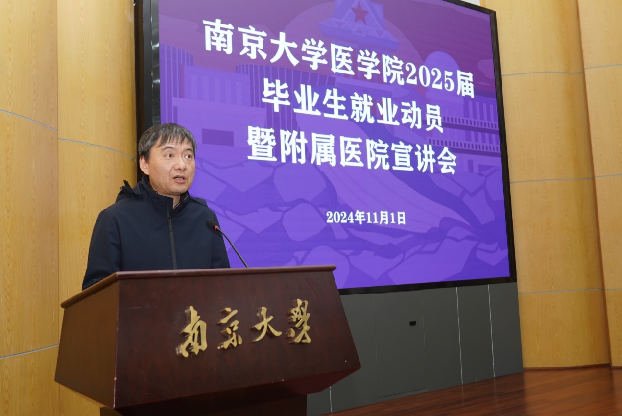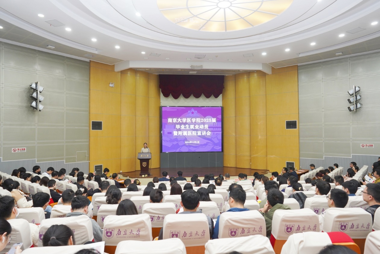 11月1日下午,2025届毕业生就业动员会暨附属医院专场宣讲会在鼓楼校区逸夫馆报告厅举行,唐健、沈苏南以及各附属医院代表出席会议。会议由王阿妮主持。