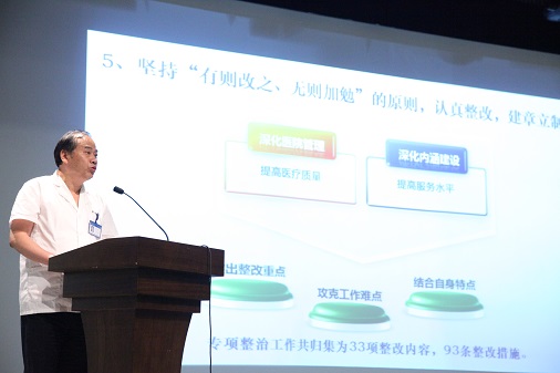 最后,丁义涛院长发表重要讲话,他充分肯定了医院党委一年来所取得的成绩,并就加强医院党建工作提出三点宝贵意见:一是总结提高,扎实开展群众路线教育实践“回头看”工作;二是脚踏实地,推动全院精细化管理水平再上新的台阶;三是牢记宗旨,谱写人文医院建设新的篇章。丁院长号召全院党员干部牢记宗旨,做好表率,在当前公立医院改革的进程中,积极参与,带头执行相关规定,抵制不规范医疗行为,合理检查、合理用药、合理治疗,在鼓楼医院这块画板上,抒写出绚丽的、独特的鼓医文化,再谱人文医院建设新篇章!