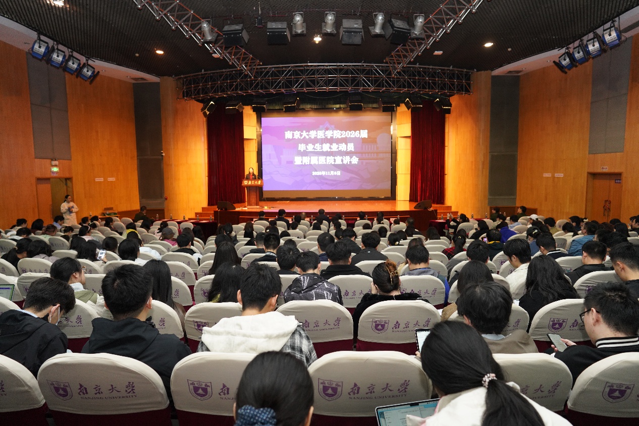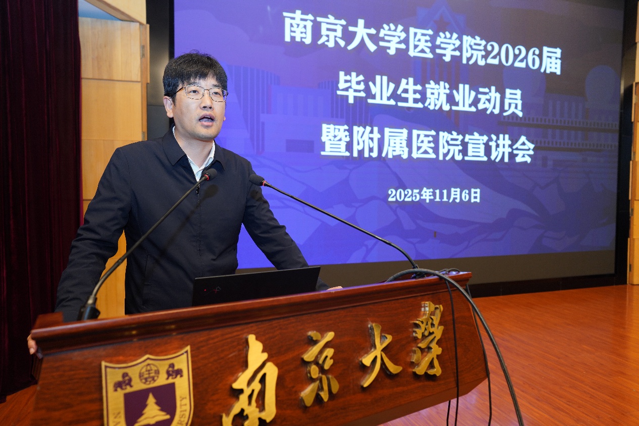 11月6日下午,2026届毕业生就业动员会暨附属医院专场宣讲会在鼓楼校区科技馆一楼报告厅举行,曲继强、沈苏南以及各附属医院代表出席会议。会议由王阿妮主持。