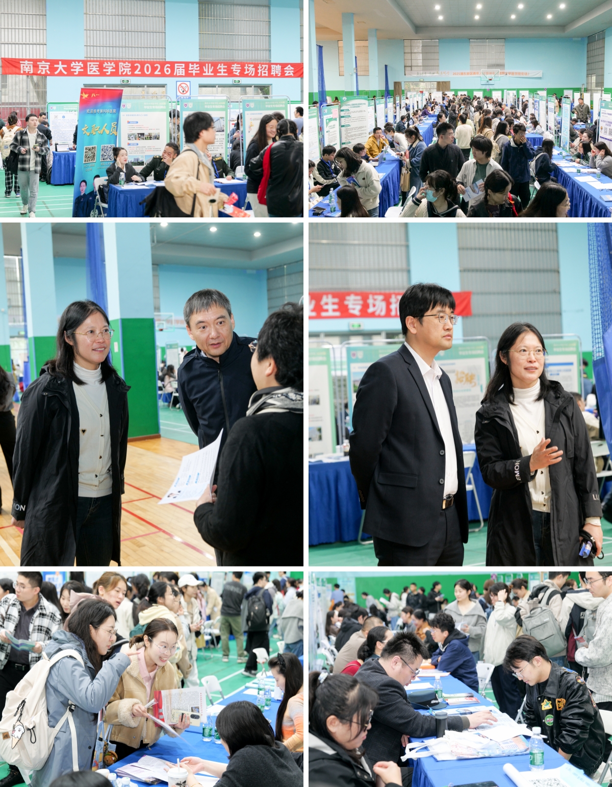 11月7日下午,医学院2026届毕业生专场招聘会在鼓楼校区体育馆举办。学校和医学院党政领导高度重视,曲继强、沈苏南、王阿妮等来到招聘会现场,与各用人单位、毕业生亲切交流,了解目前用人需求,鼓励参会同学行动起来,积极主动投递简历。