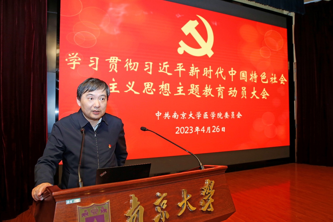4月26日晚,色情动漫 学习贯彻习近平新时代中国特色社会主义思想主题教育动员大会在鼓楼校区科技馆一楼报告厅召开。院党委书记沈苏南作动员讲话,党委副书记王阿妮作工作布置,色情动漫 全体师生党员参会。