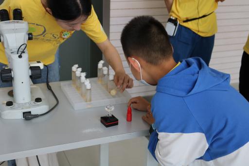 孩子们化身小小动物研究员兴奋地围着小动物,近距离地观察显微镜下的果蝇和刚刚出生的斑马鱼,在志愿者的帮助下摸一摸活泼好动的小鼠。打卡盖章环节更提升了本次活动的趣味性,小朋友们通过在每个展台听取实验动物知识讲解集章,然后兑换伴手礼斑马鱼,极大激发了孩子们参加活动的热情。