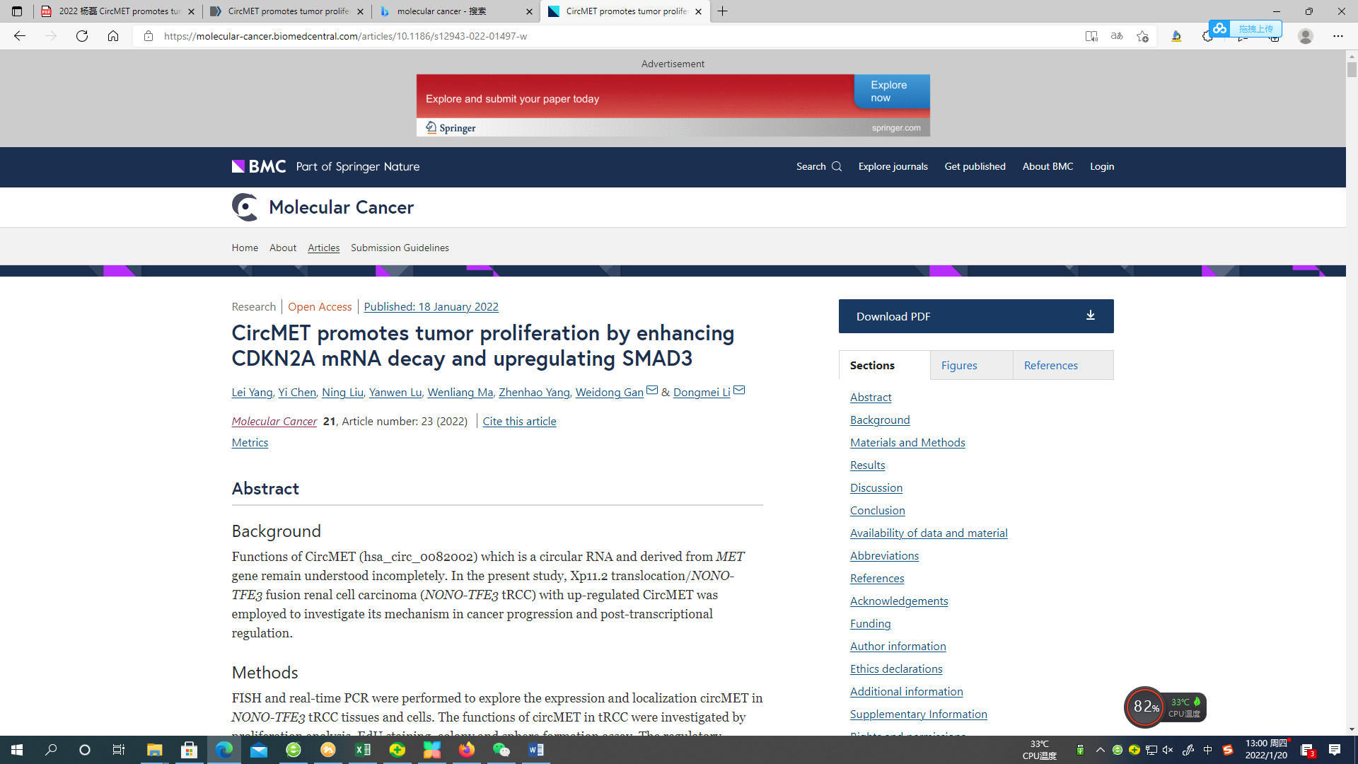 2022118日,色情动漫 李冬梅/甘卫东团队在Molecular Cancer杂志上发表文章《CircMET promotes tumor proliferation by enhancing CDKN2A mRNA decay and upregulating SMAD3》,通过利用新兴分子生物学技术详细阐述了circMET在肿瘤中调控细胞增殖的功能及机制。