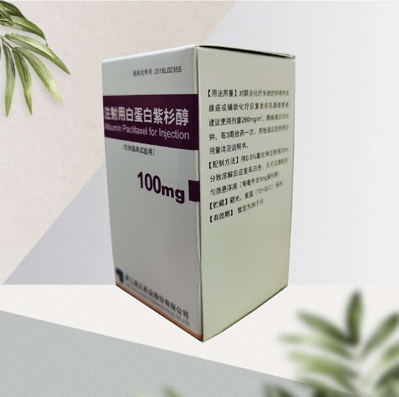 产品特点:本品为抗肿瘤纳米靶向制剂,与传统紫杉醇制剂相比,本品药效更优,副作用更低。前期相关研究表明:本品在临床前药效、动物安全性评价、临床有效性和安全性等方面达到和优于美国同类产品。期待本品批准上市后会有更加优异的表现。