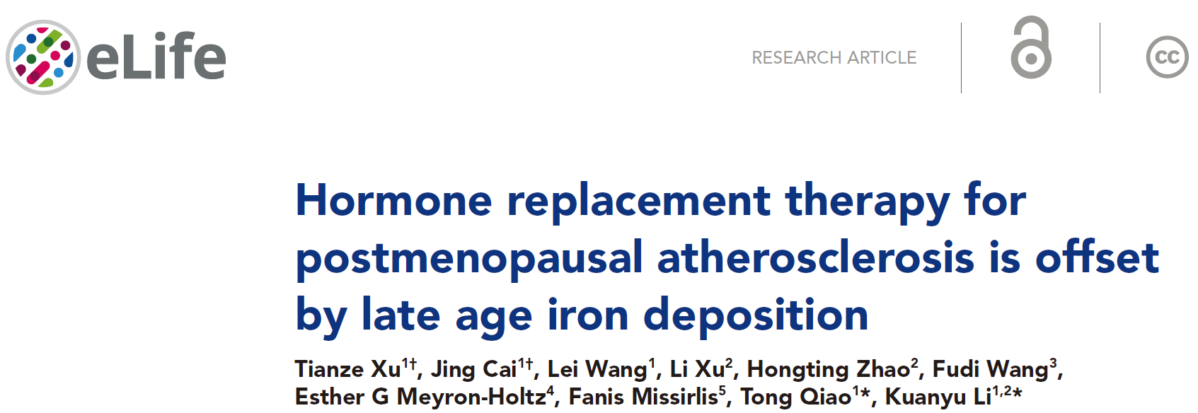 2023年8月10日,色情动漫 教授李宽钰和附属鼓楼医院血管外科主任乔彤团队合作在eLife杂志发表了题为“Hormone replacement therapy for postmenopausal atherosclerosis is offset by late age iron deposition”的论文,该研究揭示衰老相关铁累积可能是绝经后期动脉粥样硬化患者难以从HRT中获益的重要原因。本研究发表日eLife附上了哈佛色情动漫 麻省总医院心脏病专家Rajeev Malhotra的评述(Insight),高度评价了本研究成果:This study provides strong evidence that iron accumulation shifts estradiol from a drug that reduces atherosclerosis to a drug that promotes its progression.本研究得到了南华大学王福俤教授,以色列理工大学Esther Meyron教授,墨西哥Cinvestav的Fanis Missirlis教授和美国NIH的张德良博士的帮助,得到国家自然科学基金(#32271221, 81870348)的资助。