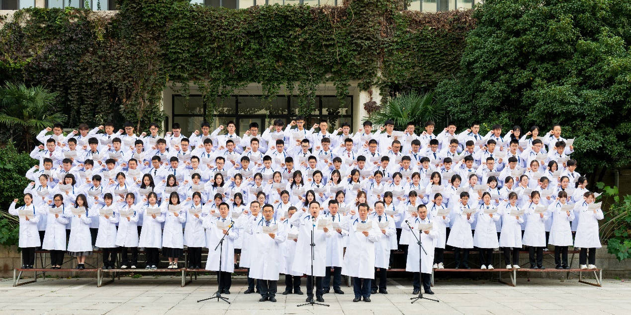 习近平总书记在党的二十大报告中强调,要“推进健康中国建设”,“把保障人民健康放在优先发展的战略位置,完善人民健康促进政策”。全面贯彻党的二十大提出的健康中国建设要求,更好地体现人民健康优先发展的战略导向,医学人才培养是重要一环。穿上白大衣,许下医学生誓言,标志着2023级新生们向医学生涯迈出了重要一步。白袍加身,任重道远,他们将秉承师长教诲,谨怀初心,肩负使命,全面投身“奋进行动”,为建设“第一个南大”汇聚青春力量,为推进健康中国建设、全面建成社会主义现代化强国的第二个百年奋斗目标贡献南大力量!
