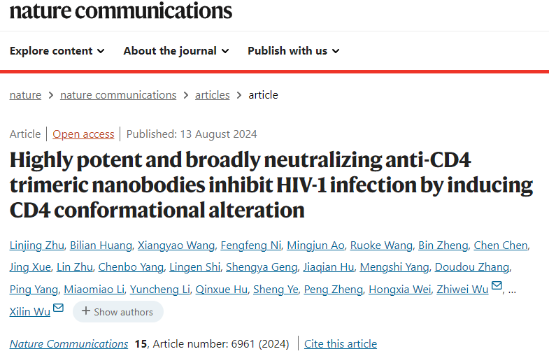 近年来,抗逆转录病毒疗法(ART)在抑制HIV复制方面取得了显著进展,显著延长了艾滋病患者的寿命,但该疗法同时也带来了严重的副作用,并导致大量耐药病例的出现。CD4作为HIV进入宿主细胞的主要受体,一直是HIV药物研发的重点靶点。然而,目前唯一的CD4抗体药物在抑制HIV病毒的广谱性和效率上仍存在不足,长期应用会导致耐药性的产生。因此,探索更有效、更广谱的中和抗体成为当务之急。