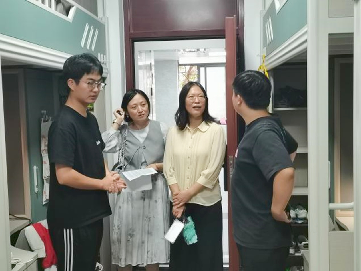 在学生宿舍区,老师们走访一间间宿舍,与同学们亲切交谈,询问同学们来自哪里,是否适应新的环境,对学校的食宿条件是否满意。同学们纷纷热情回应,分享自己初入南大的感受和对未来研究生生活的憧憬。