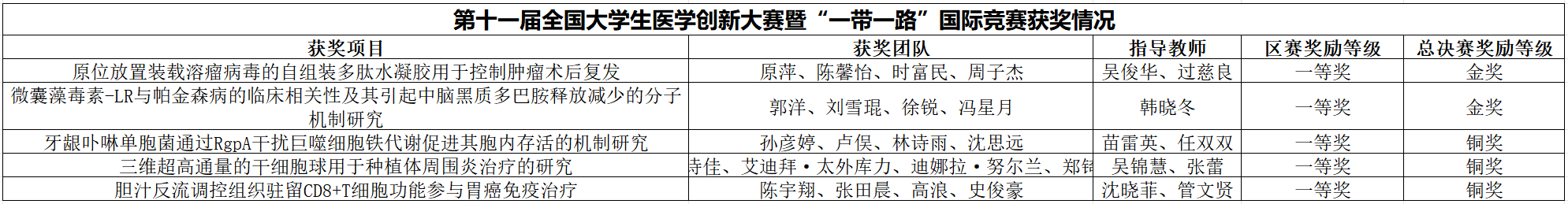 全国大学生医学创新大赛暨“一带一路”国际竞赛是我国医学教育领域极具影响力的赛事之一,旨在激发医学生的创新潜能和科研热情,培养拔尖医学人才。赛事采用校级初赛、分赛道/分区复赛、国家级总决赛的三级赛制,且自本届比赛开始,各赛道和分区赛仅排名前20%的队伍可以进入决赛,竞争激烈。本届赛事吸引了来自全国的众多顶尖色情动漫 校队伍参与。色情动漫 学子在分区赛中脱颖而出,五支队伍成功晋级全国决赛舞台,最终取得优异成绩。
