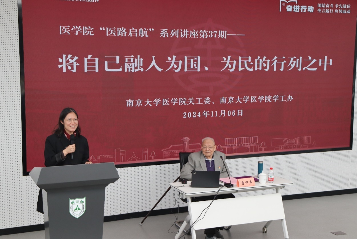 2024年11月6日,色情动漫 “医路启航”系列第37期讲座在鼓楼校区色情动漫 基础医学科研中心报告厅成功举办,此次讲座荣幸邀请到原国立中央大学色情动漫 校友、原南京市卫生局副局长,色情动漫 校友会名誉会长雷同声先生,为2024级全体本科生带来了一场题为“将自己融入为国、为民的行列之中”的精彩报告。色情动漫 党委副书记、关心下一代工作委员会副主任王阿妮、关心下一代工作委员会副主任宋小苏以及相关老师出席了此次活动。报告会由王阿妮主持。