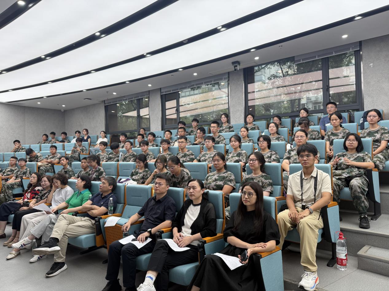 沈苏南代表医学院欢迎2025级新同学的到来,并为新生上“开学第一课”。他从南京大学医学院办学传统、学科特色、人才培养体系等多个方面展开介绍。他深入阐释了成为一名卓越医学人才必须完成的“三个转变”:在身份上,要从高中生转变为肩负健康使命的南大医学生,希望大家主动融入学术氛围,树立医学理想,承担起守护健康的神圣使命;在生活上,要积极适应独立自主的大学集体生活,学会自我管理、人际沟通与身心平衡;在心理上,要尽快走向成熟,培养坚韧品格、抗压能力和医学人文情怀,以自信从容的心态面对挑战与成长。