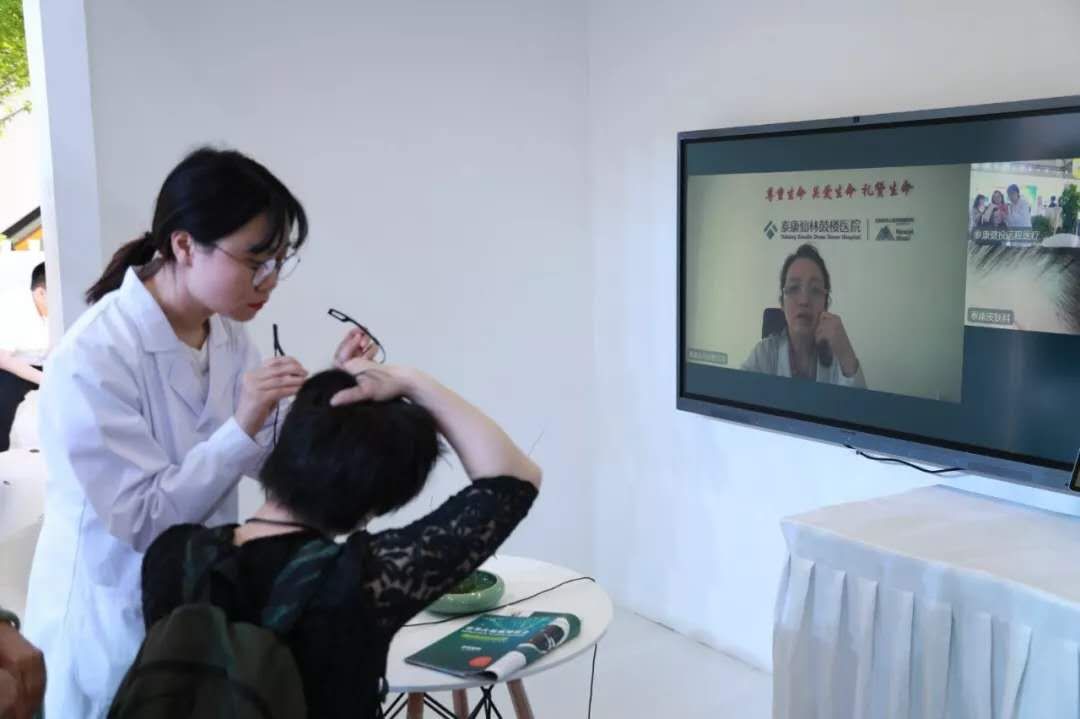 展会上,来自泰康仙林鼓楼医院皮肤科、内分泌科、消化内科、呼吸内科的知名专家通过视频为来往游客做健康咨询,把优质的医疗服务送到人们身边。在心电检查区,体验者可以现场完成心电检查,报告同步传输至泰康仙林鼓楼医院,由超声与功能检查科的专家会诊出具报告。