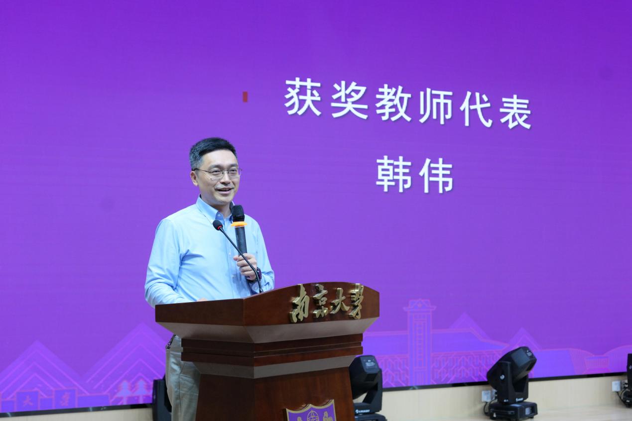 获奖教师代表韩伟发言。他表示,教师的成长得益于学校与附属医院的悉心培养,以及优秀前辈的倾囊相授。人才培养是教学事业的永恒主题,作为教师要与学生相互成就,以培养卓越医学人才为己任,共同谱写学校与学院发展的新篇章。