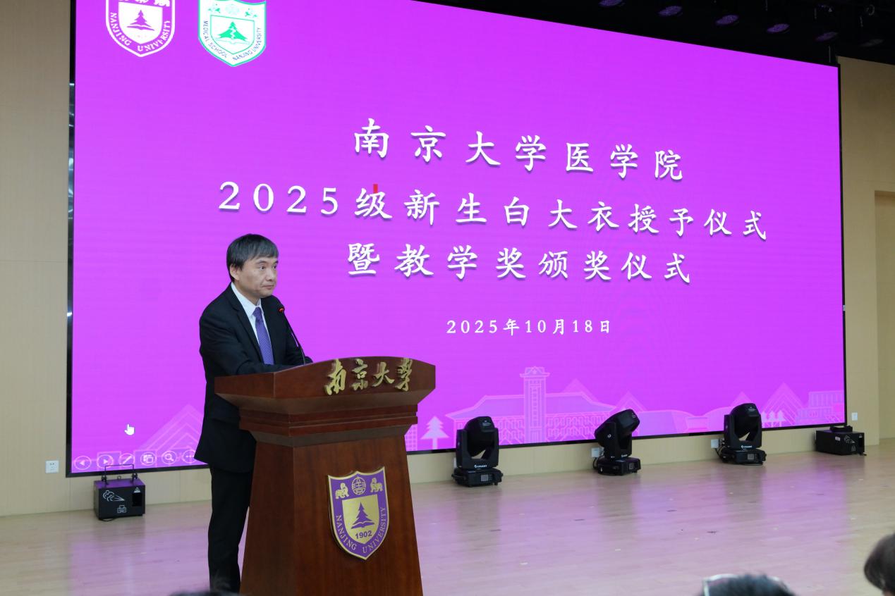 10月18日下午,南京大学医学院2025级新生白大衣授予仪式暨医学院教学奖颁奖仪式在鼓楼校区田家炳多功能厅顺利举行。