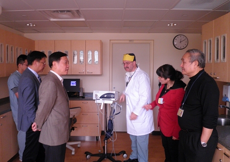 应美国密西根大学牙学院口腔颌面外科主任Helman教授的邀请,2013年11月3-7日,我院胡勤刚、闫福华、葛久禹、王铁梅等四位教授前往美国密西根大学牙学院进行为期3天的学术交流。期间参加了Detroit地区的口腔颌面外科年会,分别与口腔颌面外科Helman教授、口腔正畸科Kapila教授,牙周病与牙学院全球口腔卫生合作部主任Yvonne Kapila教授和生物材料实验室主任Krebsbach教授进行交流,特别是Krebsbach教授肯定了我院口腔颌面外科朱峰博士在他实验室一年的研究工作。同时还参观了密西根大学医学院附属医院的手术室、监护病房及口腔颌面外科门诊与病房,牙学院的临床前实验室、教学诊室、消毒供应室、密西根大学北校区的生物材料研究中心等。