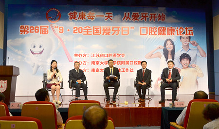今年9月20日为第26个全国爱牙日,本次爱牙日的主题为“健康每一天,从爱牙开始”。为了更好地开展科普宣教,倡导群众关注口腔健康,提高大众口腔保健意识,丰富大众口腔保健知识,第26届“9.20全国爱牙日”口腔健康论坛暨义诊活动于9月17日下午在南京大学新闻传播学院演播厅成功举办。此次活动由江苏省口腔医学会主办、南京大学医学院附属口腔医院承办、南京大学离退休工作处协办。