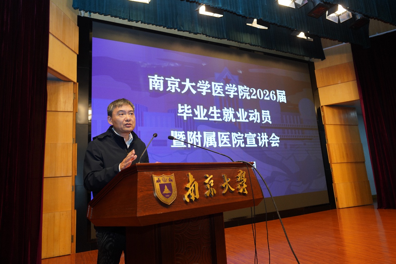 11月6日下午,2026届毕业生就业动员会暨附属医院专场宣讲会在鼓楼校区科技馆一楼报告厅举行,曲继强、沈苏南以及各附属医院代表出席会议。会议由王阿妮主持。