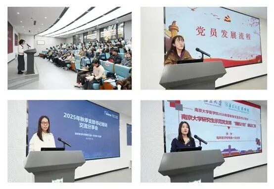 会上,医学院党委组织员张亦萱就党员发展流程相关问题作详细介绍,帮助医学院各党支部进一步明晰各环节的要求和注意事项。临床医学长学制博士第一党支部书记王志越、临床医学专博第一党支部书记张宇先后分享了支部工作中的经验和心得,分别从不同角度介绍了在推进支部建设、树立支部特色、激发党员参与热情等方面所做的主要工作。