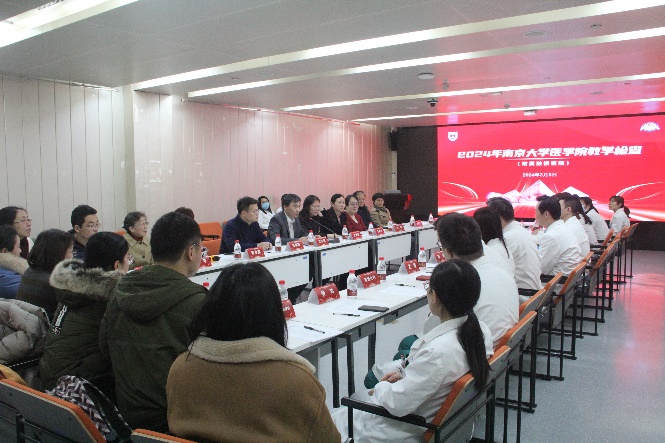 为深入贯彻落实立德树人根本任务,迎接2024年普通高等学校本科教育教学评估工作,全面提升临床教学质量,南京大学医学院于3月5日至6日开展了附属医院中期教学检查工作。由南京大学医学院党委书记沈苏南带队,赴附属鼓楼医院、附属金陵医院(东部战区总医院)和附属口腔医院进行了临床教学和学生实习过程检查,检查组成员还包括医学院党委副书记王阿妮、副院长王婷婷、副院长吴锦慧,本科生院老师,医学院教学督导,并特邀附属医院的教学专家共同参与。