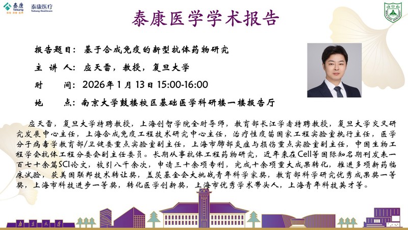 2026.1.13泰康医学学术报告-应天雷教授:基于合成免疫的新型抗体药物研究