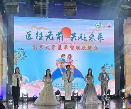 2023年3月25日晚,南京大学医学院“医往无前、共赴未来”主题联欢晚会在南京大学鼓楼校区科技馆报告厅隆重举行。南京大学医学院党委副书记王阿妮、团委副书记顾云倩、研究生辅导员汪恒辉及学工秘书林风致老师受邀出席本次晚会,与同学们一起感受医学院学生们的青春与激情。