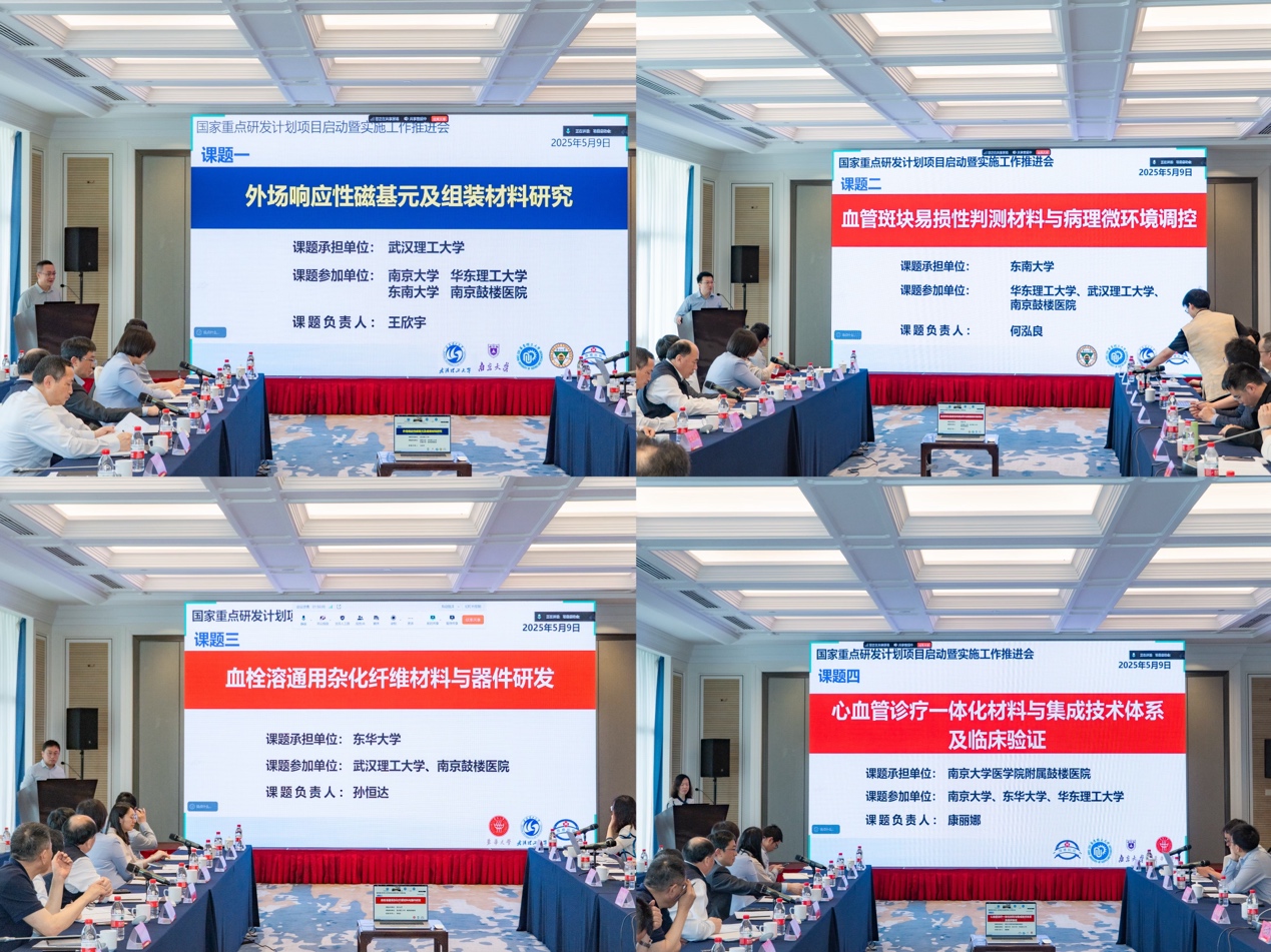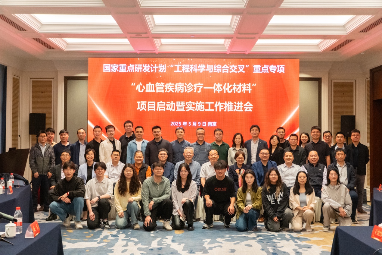 2025年5月9日,由中国科学院院士、南京大学医学院顾宁教授牵头主持,联合武汉理工大学、东华大学、华东理工大学、东南大学及南京大学医学院附属鼓楼医院共同承担的,国家重点研发计划“工程科学与综合交叉”重点专项“心血管疾病诊疗一体化材料”项目启动会暨实施工作推进会在南京顺利召开。此次会议汇聚了来自全国多所高校、科研机构及医疗机构的专家学者,通过线上线下结合的方式,深入探讨了项目的实施方案和取得的阶段性进展。