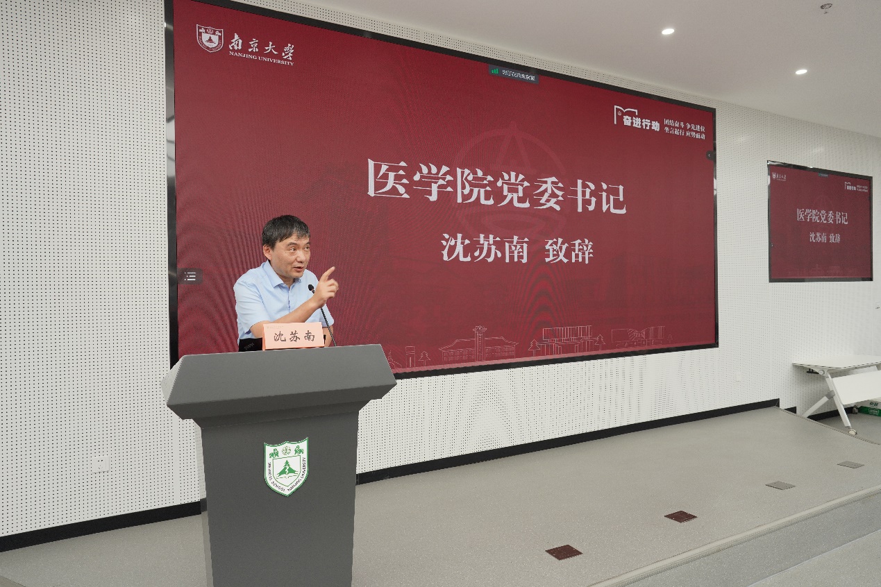 最后,沈苏南总结致辞。他与新生分享了自己的求学经历,勉励新生做好从高中生到大学生的角色转变,积极调整心态,鼓励同学们奋发自强,打好专业基础的同时强健体魄,为医学事业的发展贡献自己的力量。