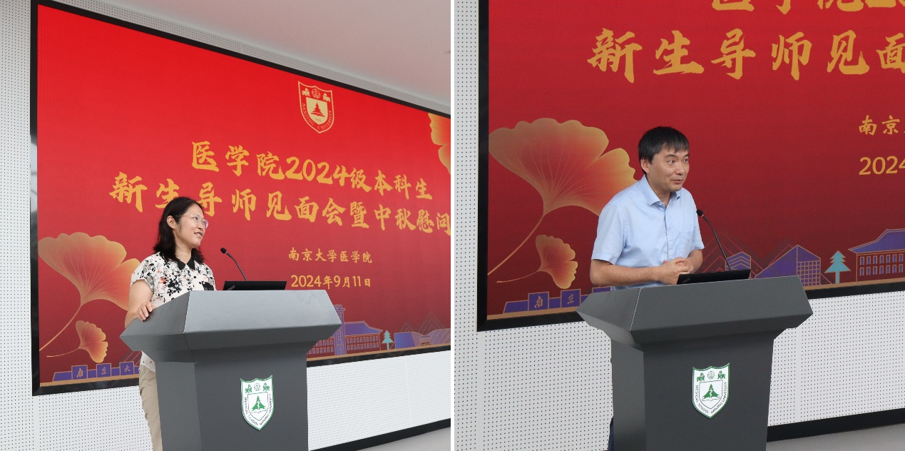 王阿妮首先向新生表示热烈欢迎,并从性别比例、专业分布和生源地等方面介绍了2024级医学专业新生概况。吴锦慧以“南京大学医学院欢迎你——做杰出的领导型临床学家和医学科学家”为题,向新生及家长详细介绍了南大医学院的历史沿革、发展现况及培养目标。