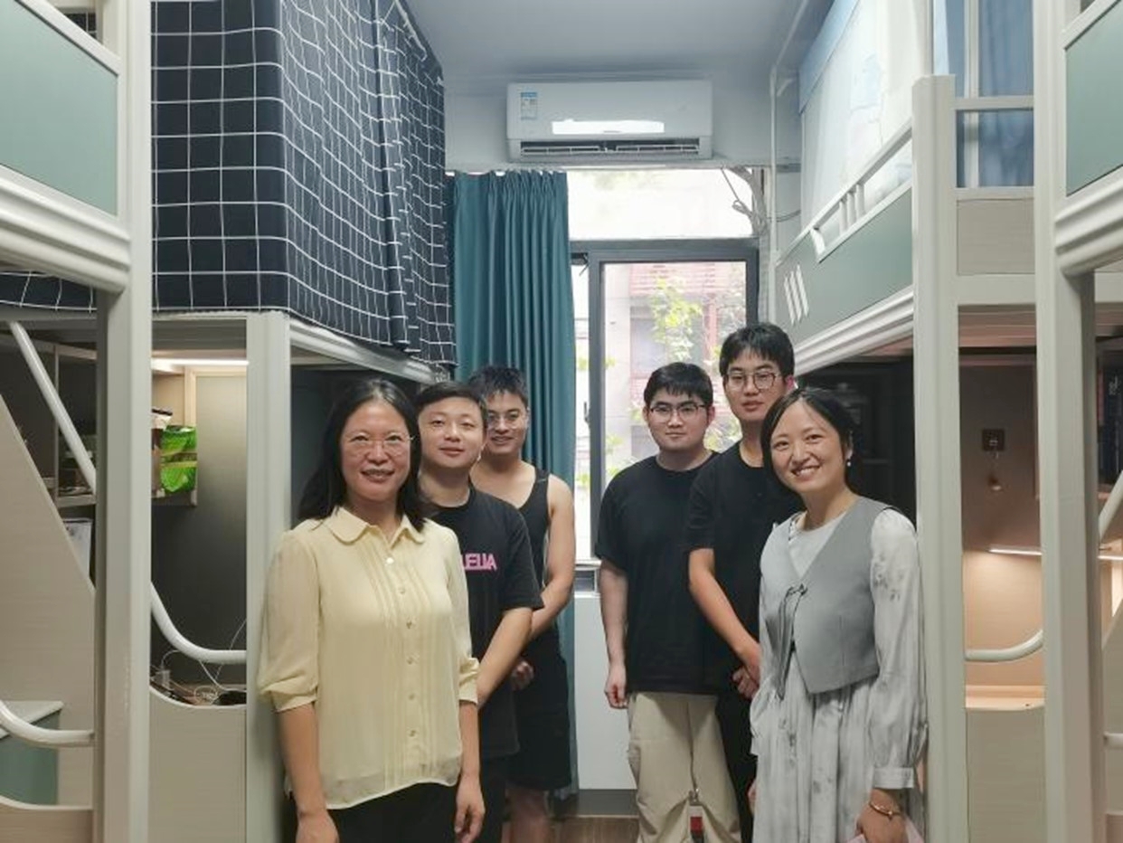 在学生宿舍区,老师们走访一间间宿舍,与同学们亲切交谈,询问同学们来自哪里,是否适应新的环境,对学校的食宿条件是否满意。同学们纷纷热情回应,分享自己初入南大的感受和对未来研究生生活的憧憬。