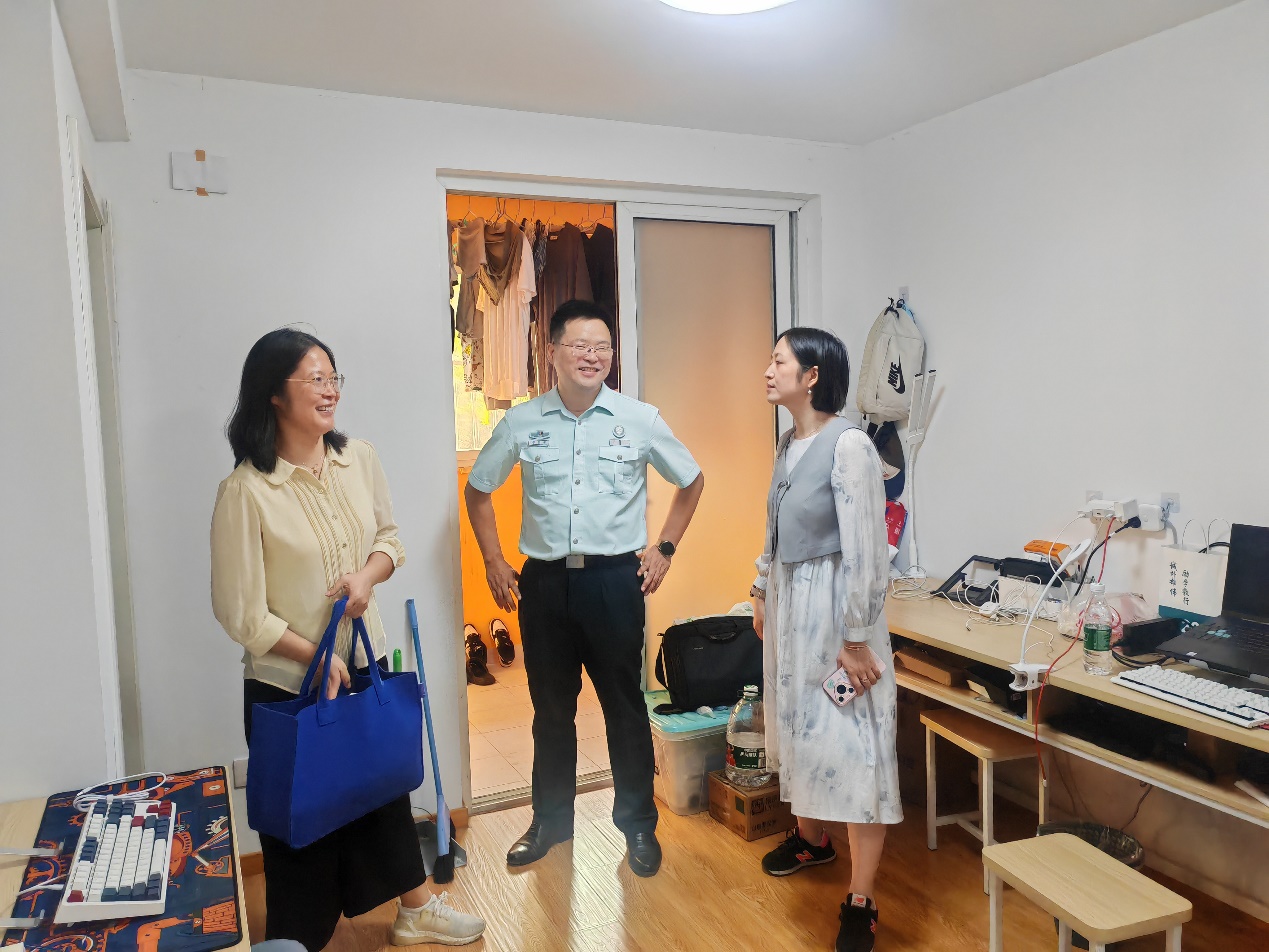 学院一行还走访了位于校外的附属医院宿舍,附属金陵医院(东部战区总医院)教育处顾怀敏主任、张明杰老师一同参访。王阿妮一行仔细查看了宿舍的设施设备,询问了去医院和学校的通勤情况等,关心同学们的生活需求,希望同学们充分利用学校资源,空闲时多去学校读书学习。