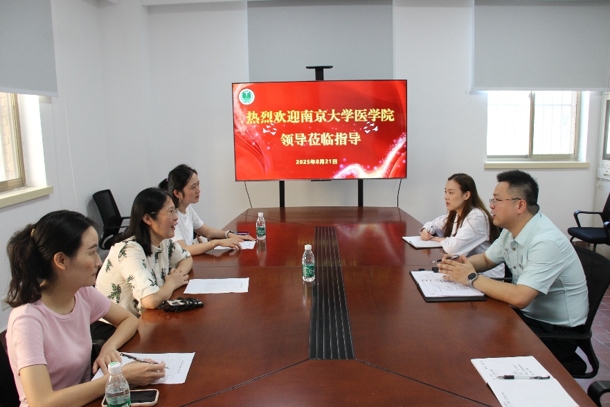 在附属金陵医院,教学办主任顾怀敏介绍了新生入院教育活动的具体安排,并带领调研组前往宿舍区,介绍学生床位数配置、寝室内部环境、整体管理及服务运行情况。